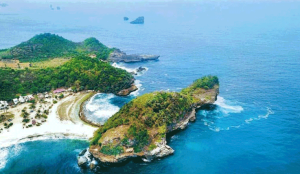Pantai Batu Bengkung terletak di daerah Malang Selatan dan di kenal dengan pasir putihnya yang bersih serta batu karang besar yang menjadi ciri khasnya. - Pantai Tiga Warna
